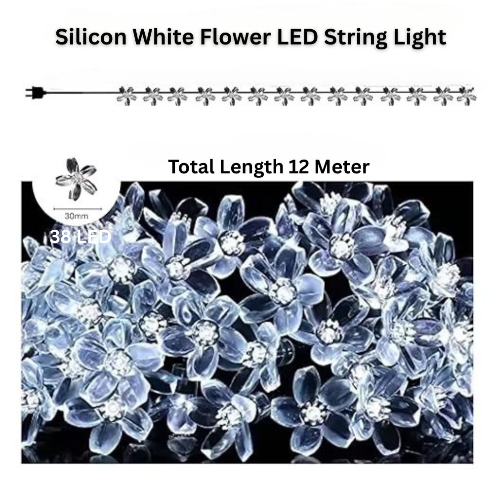 38 LED, 12 Meter Silicone Flower Fairy String Lights – White Decorative Series Lights